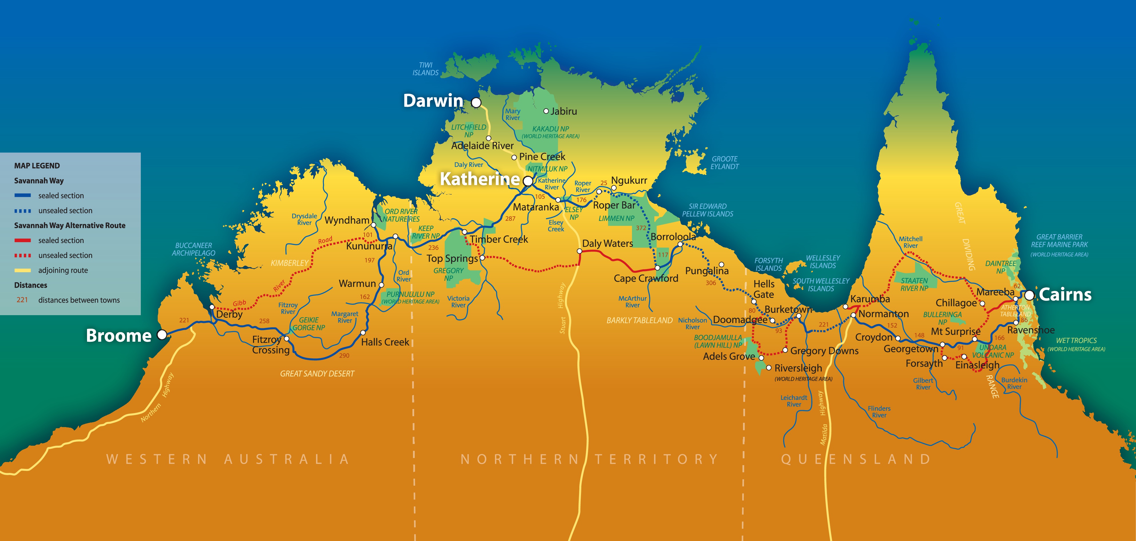 Driving from Darwin to Cairns on the Savannah Way in Australia